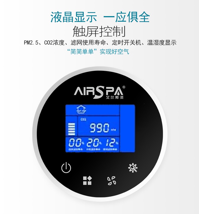 2、液晶顯示:顯示功能空氣質量數據、PM2.5濃度顯示、二氧化碳顯示